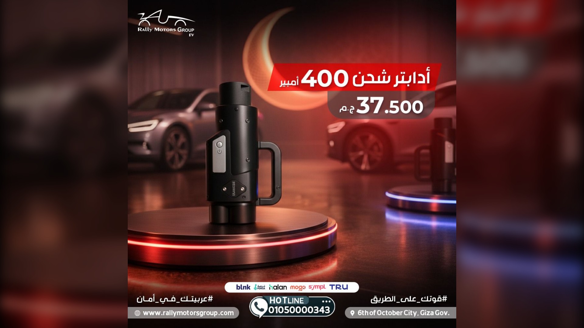 خليك دايماً جاهز مع أدابتر شحن 400 أمبير واستمتع بشحن سريع وموثوق لعربيتك الكهرباء في أي وقت.